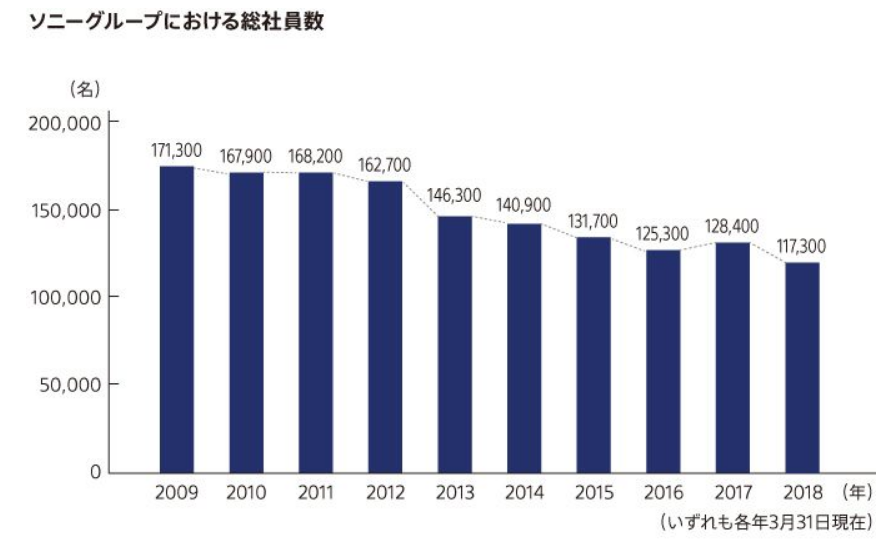 固定費削減などコスト構造改革に関しても、ソニーが貢献できる部分はありそうだ。KADOKAWAの18/3期末の連結従業員数は4330名(うち平均臨時雇用者数2046人)、平均年収794万円となっている。人員削減余地がありそうではないか?グラフのとおり、ソニーは、不採算事業の切り離しなどで10年で3割以上の人員を削減してきた。また、会議やプロジェクトマネジメントの効率化などにも取り組んできた。もちろん、KADOKAWAが自発的な構造改革ができるなら、それに越したことはないが、外圧によって危機感を共有することも刺激として機能しうるだろう。